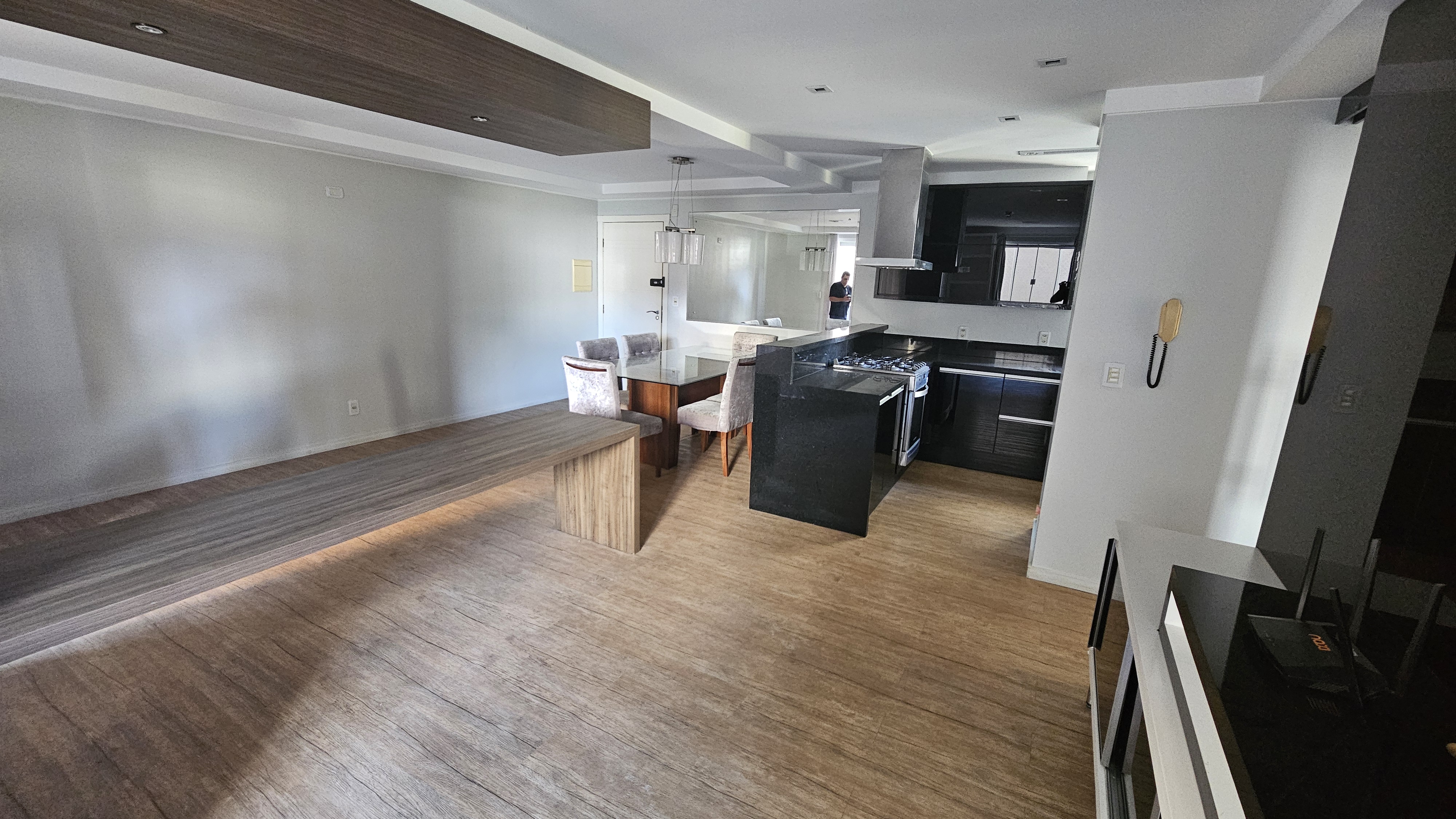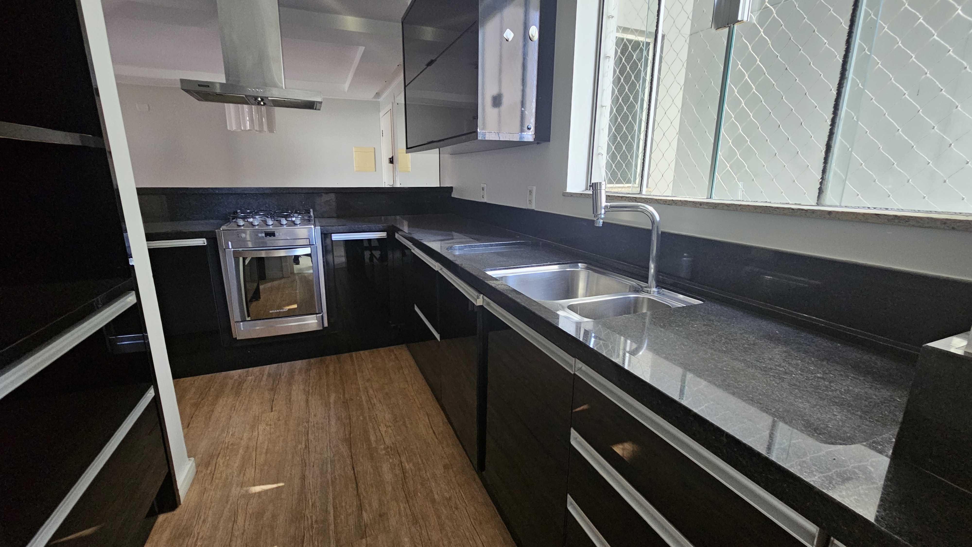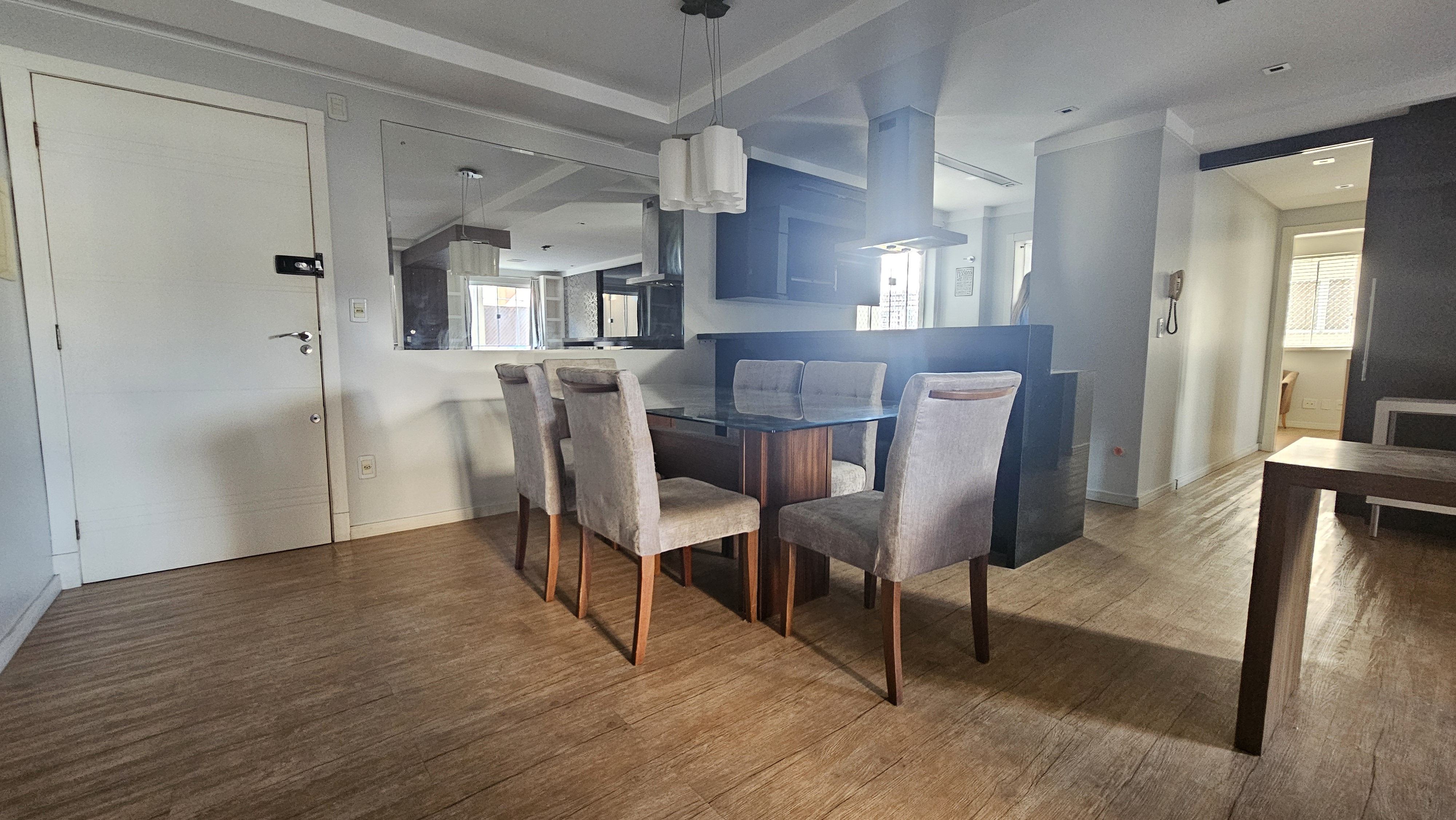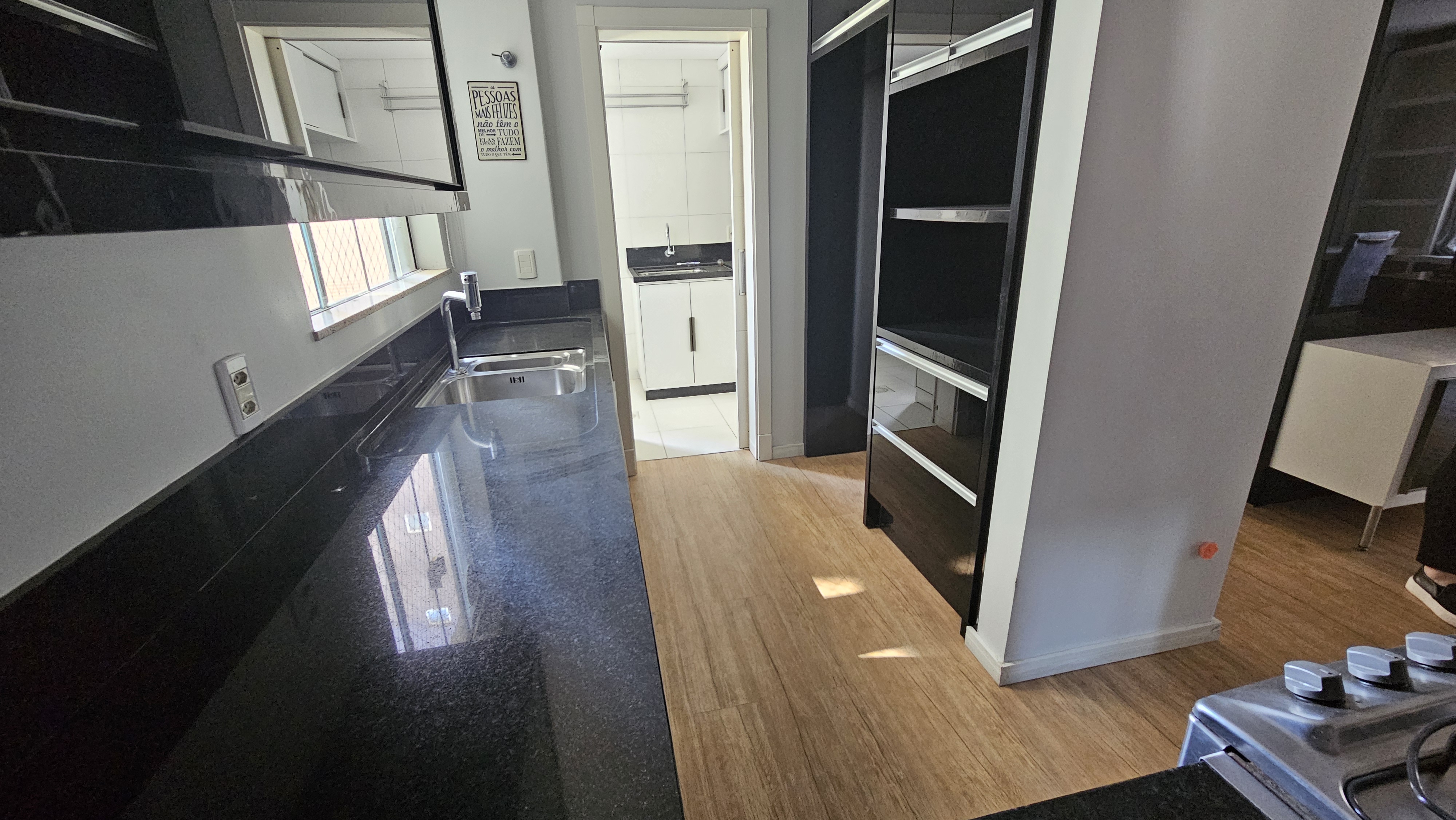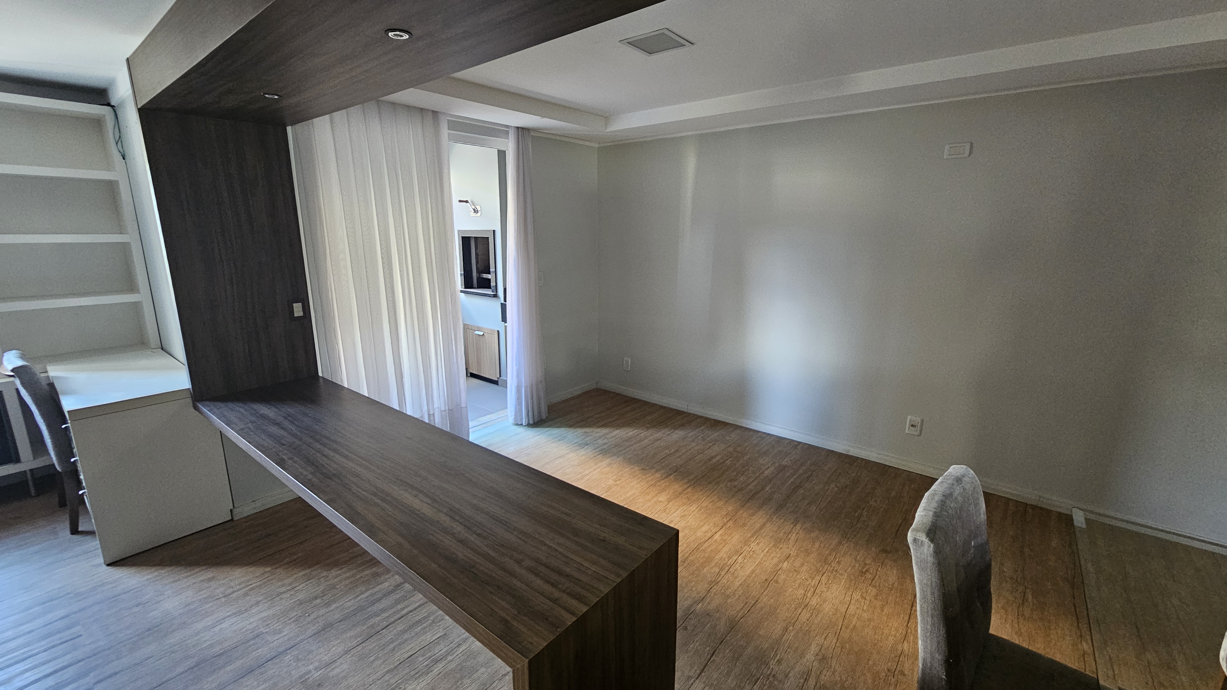 Apartamento semimobiliado, com 01 suíte, 01 quarto, sala de tv, sala de jantar, escritório, cozinha, área de serviço, churrasqueira na sacada e garagem.