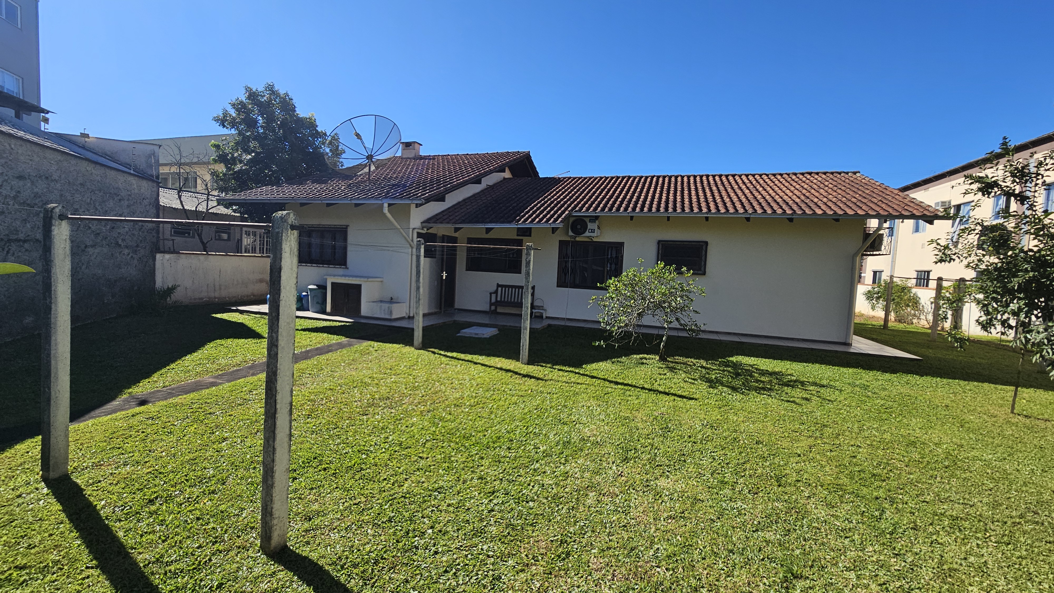 Casa residencial com 02 quartos, sala de janta, sala de tv, lavanderia, área de festas com churrasqueira, 01 lavabo, 02 vagas de garagem.